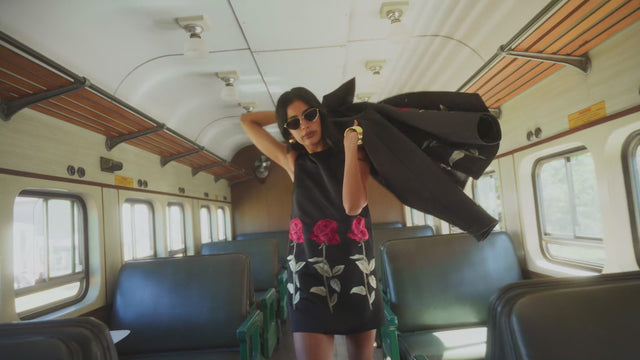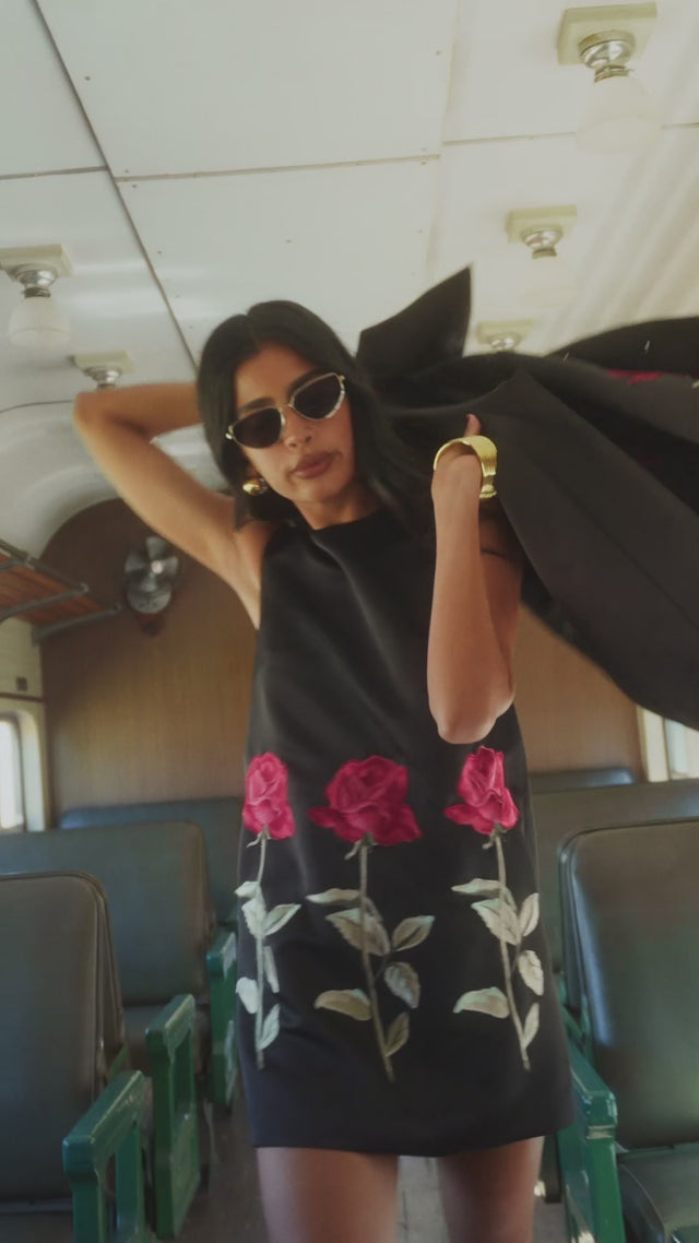 Fall ‘25 is an exploration of textural contrasts and rich details, and embellishment transforms each piece into a work of art. Soft houndstooth tweed meets opulent beaded & laser cut velvet, hand-twisted roses are paired with sequins and embroidery is complimented by hand-beading.