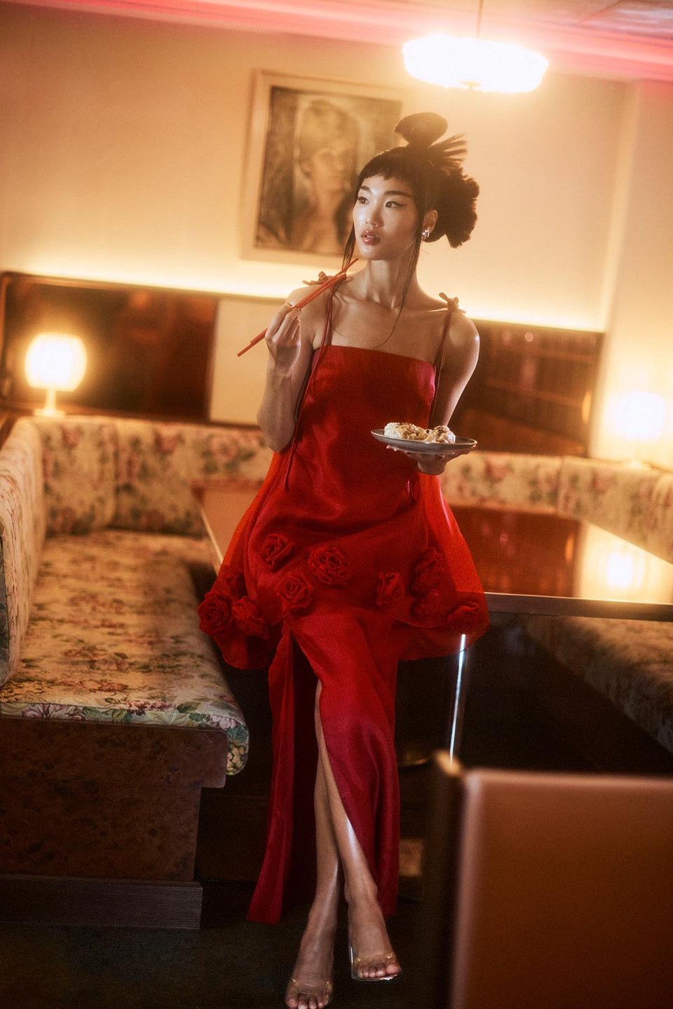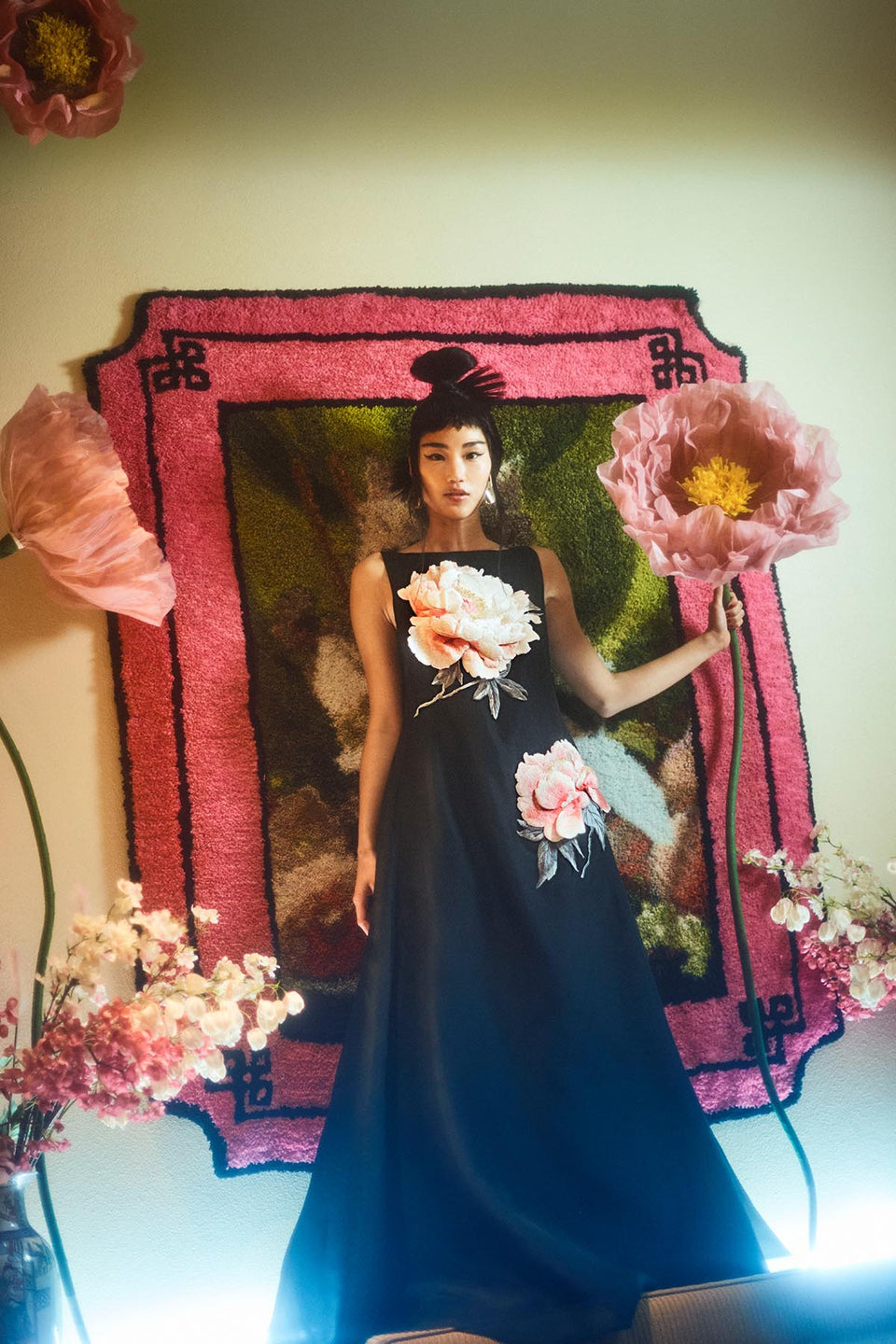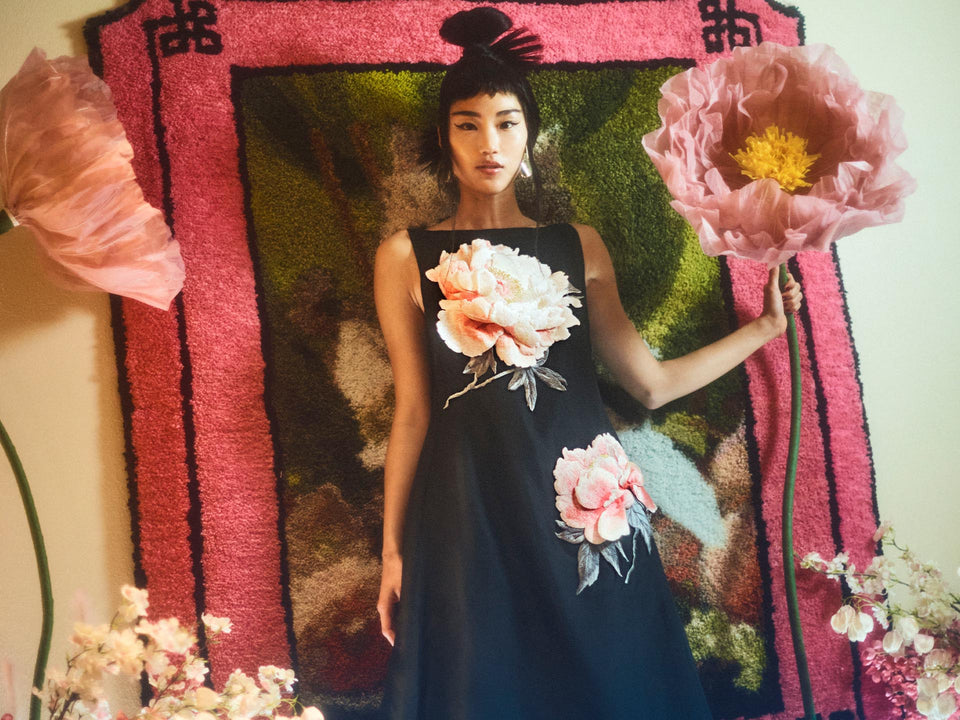Yumei Applique Floral Open Back Gown - Onyx