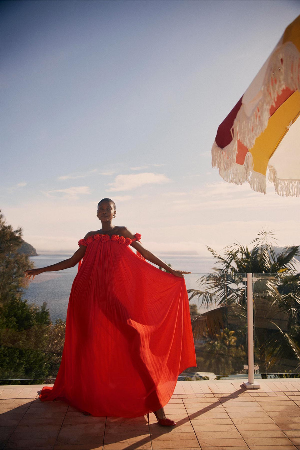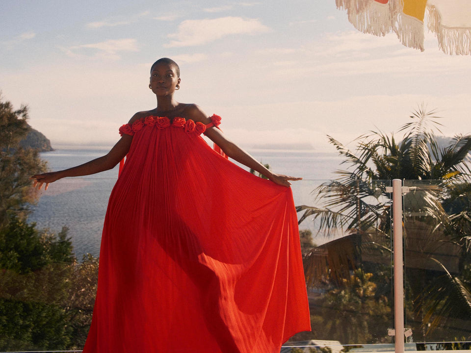 Camilla Draped Floor Length Dress - Scarlet