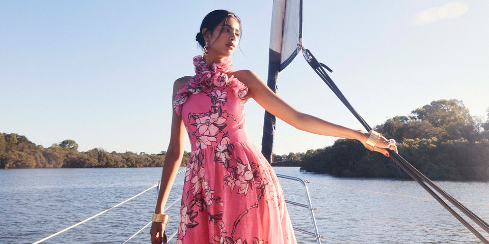 Isabelle Ruffled Halterneck Maxi Dress - Pink Magnolia Print