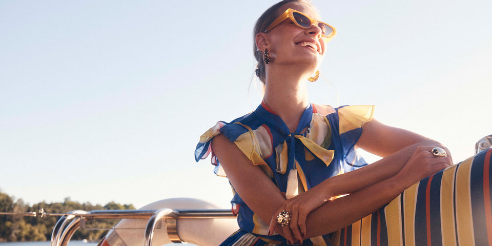 McKayla Off-Shoulder Top - Stripes in Scarlet