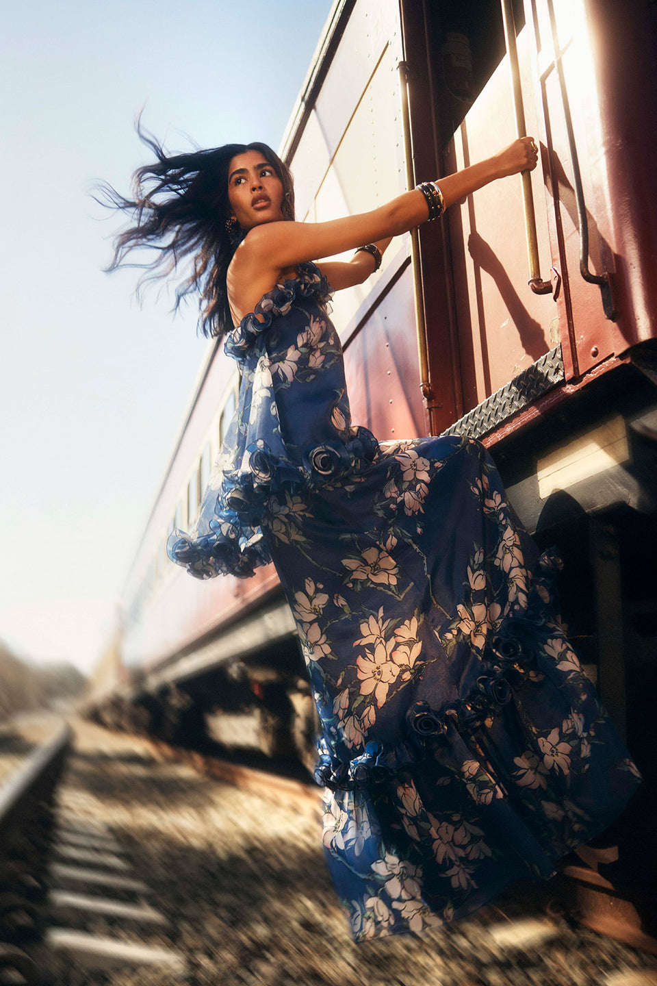 Angela Ruffled Maxi Dress - Saffron Peony Print