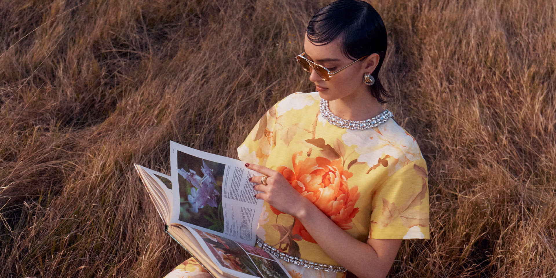 Indie Embellished Sleeve Top - Peony Print in Yellow