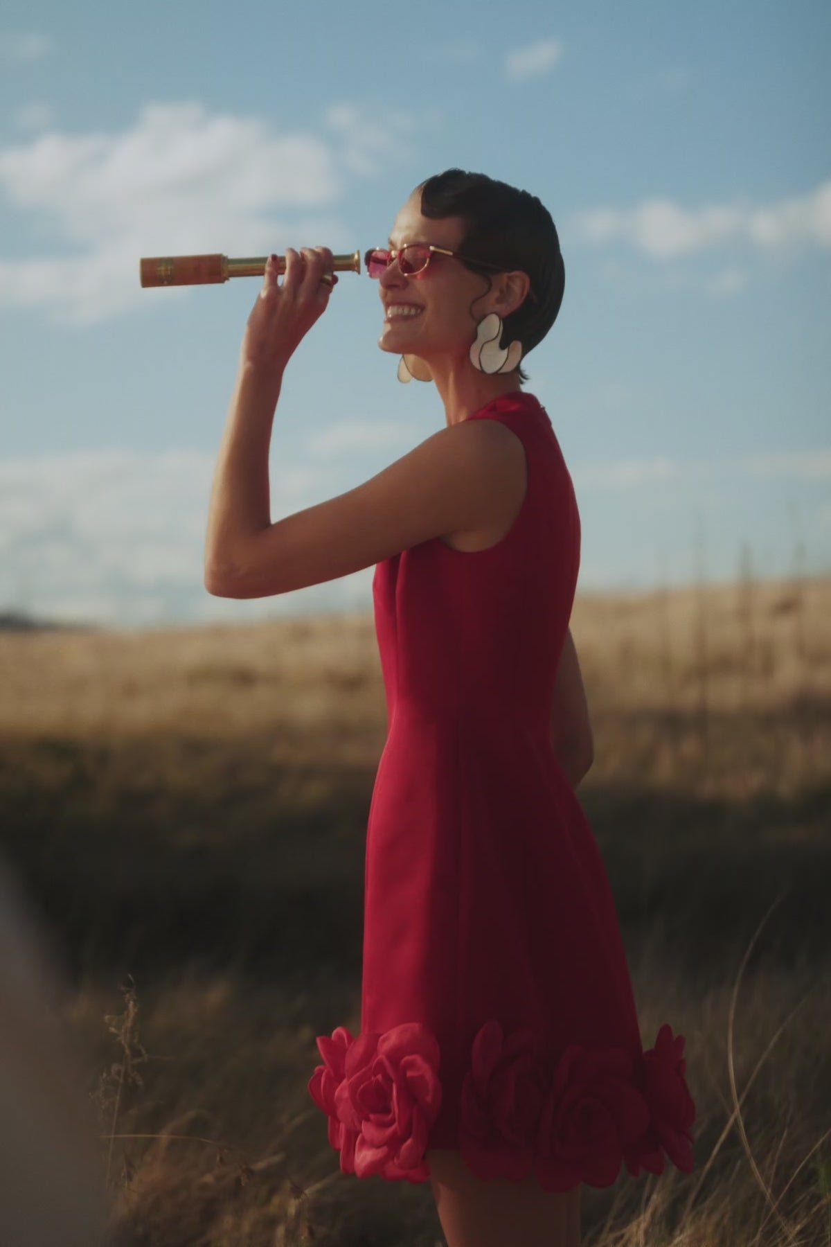 Yvonne Applique Floral Mini Dress - Peony Print in Fuchsia