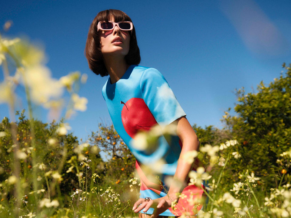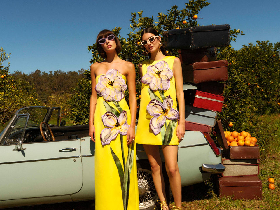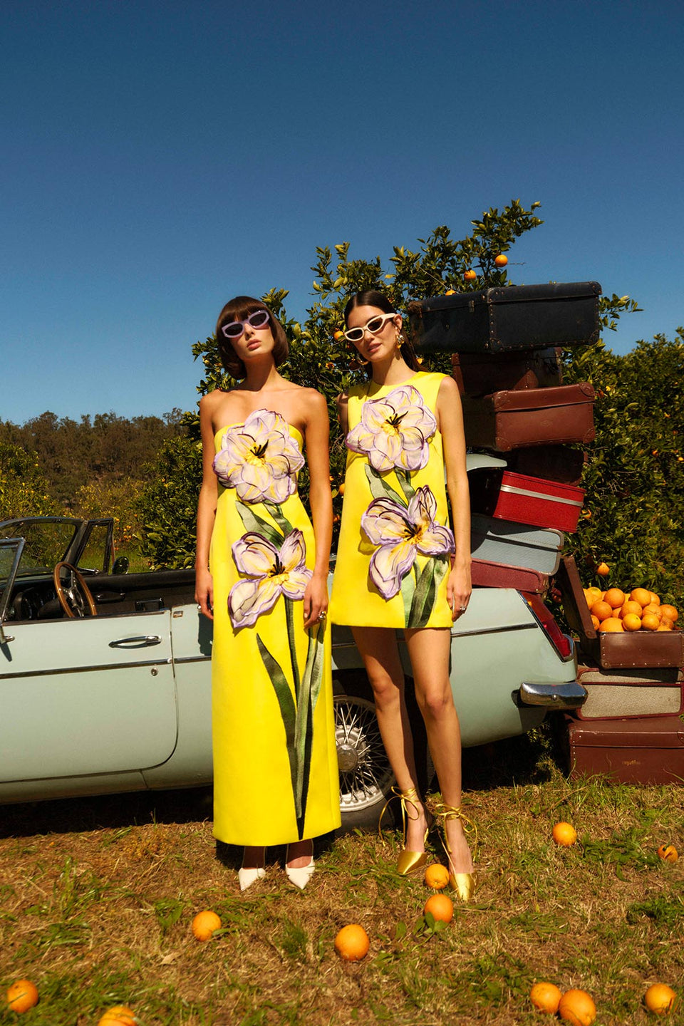 Yvonne Appliqué Floral Mini Dress - Iris Print in Yellow