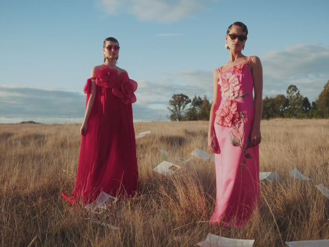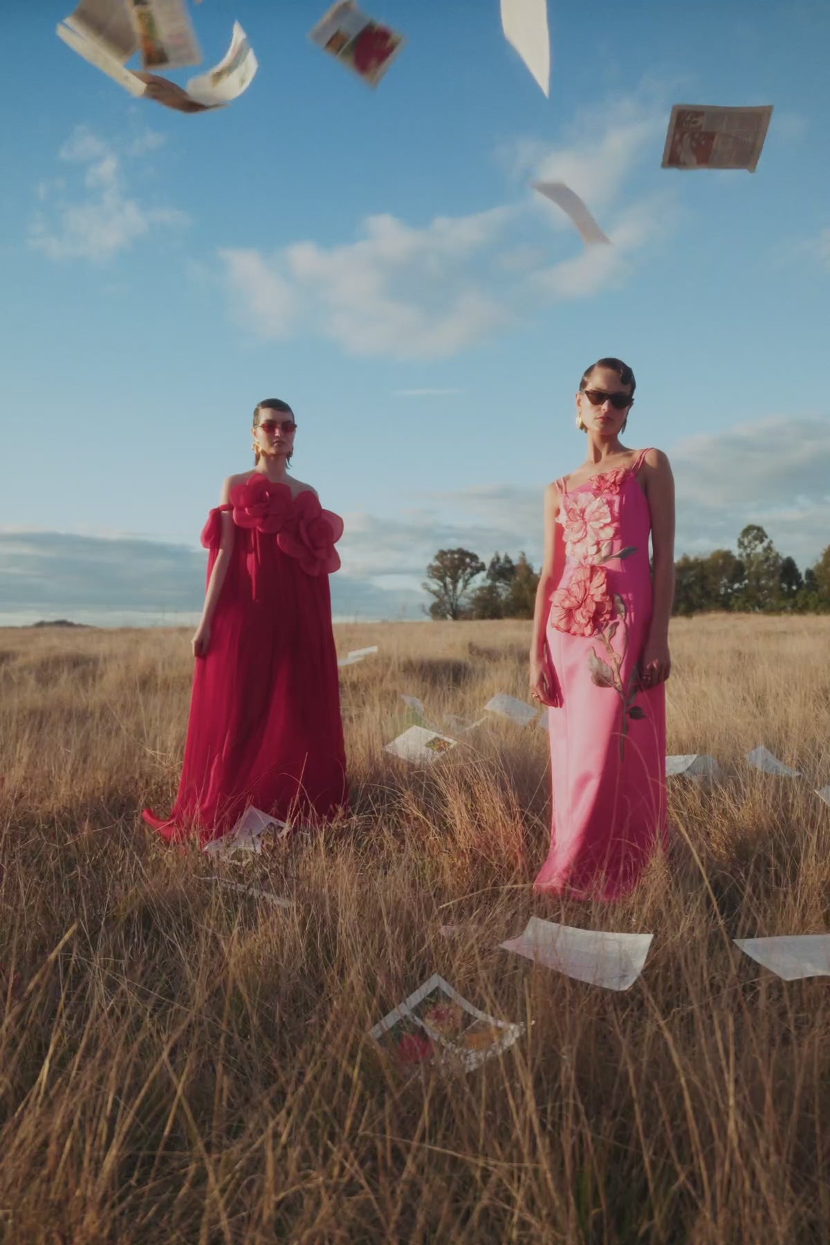 Arianna Applique Floral Maxi Dress - Peony Print in Fuchsia