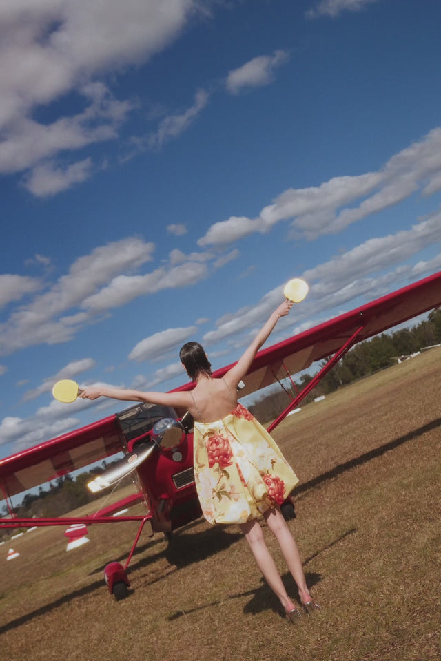 Patsy Embellished Puff Mini Dress - Peony Print in Yellow