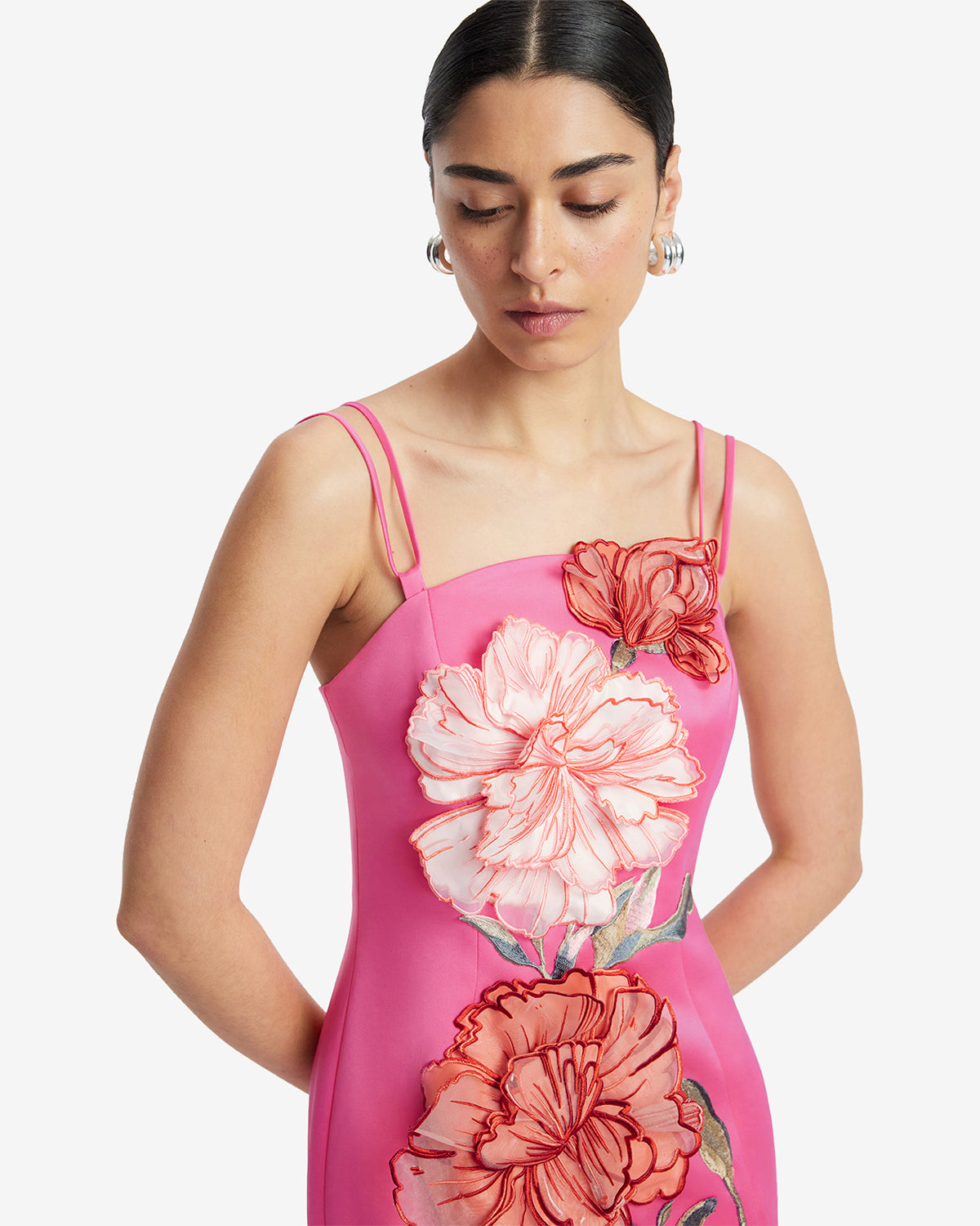 Exclusive LEO LIN  Arianna Appliqué Floral Maxi Dress - Peony Print in Fuchsia