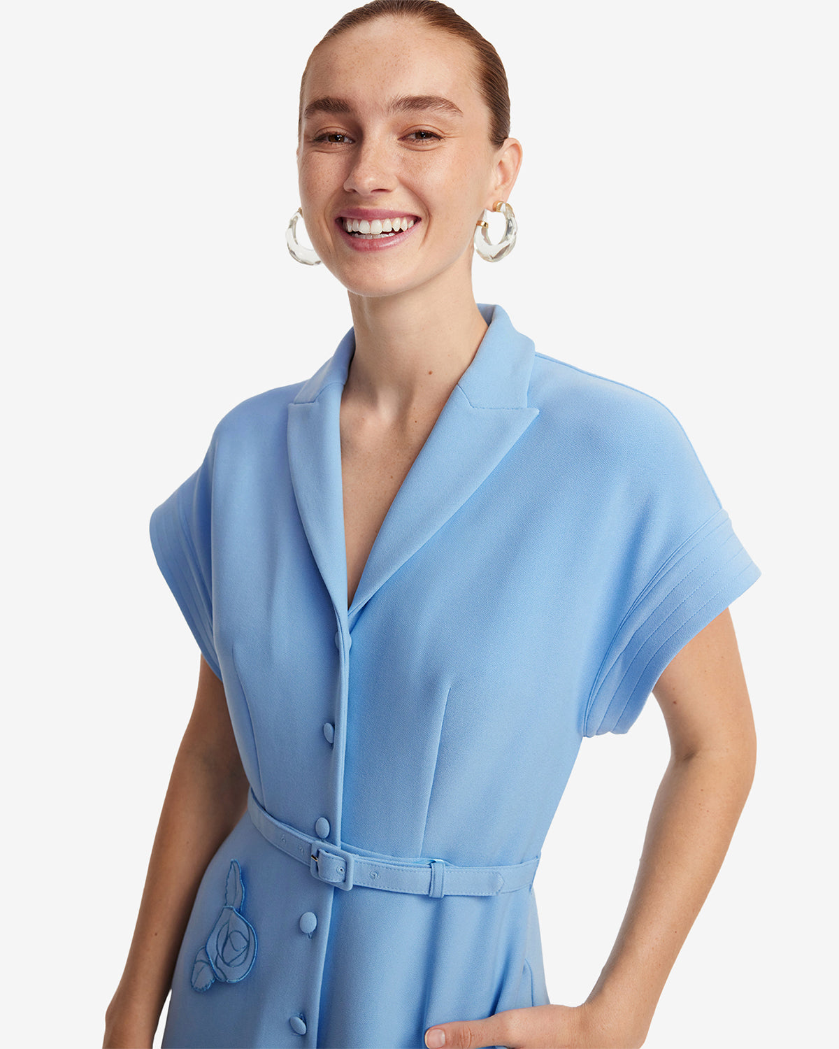 Exclusive LEO LIN Aubrey Applique Shirt Midi Dress - Pastel Blue