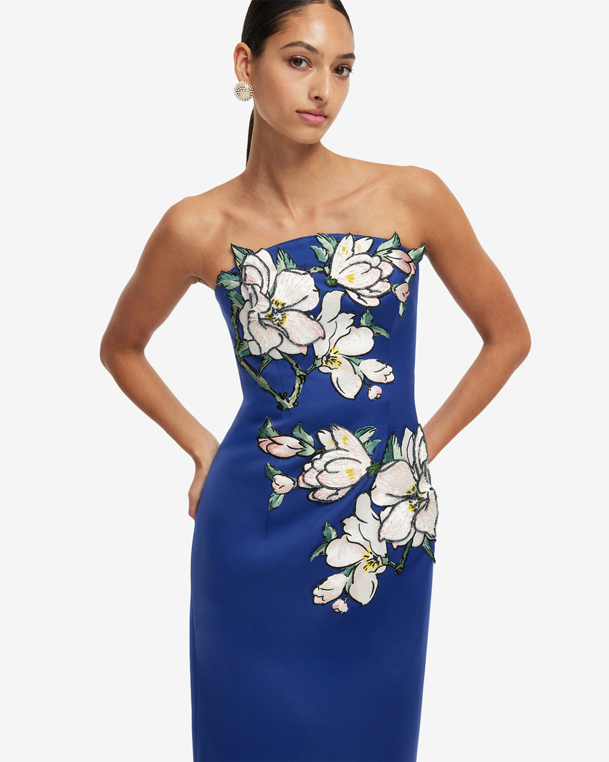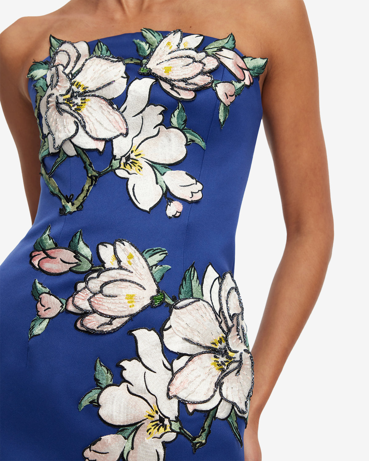 - Exclusive LEO LIN Magnolia Print in Midnight Blue