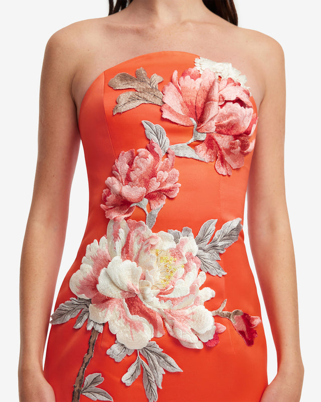 - Floral appliqué detailing with hand sewn beading embellishments