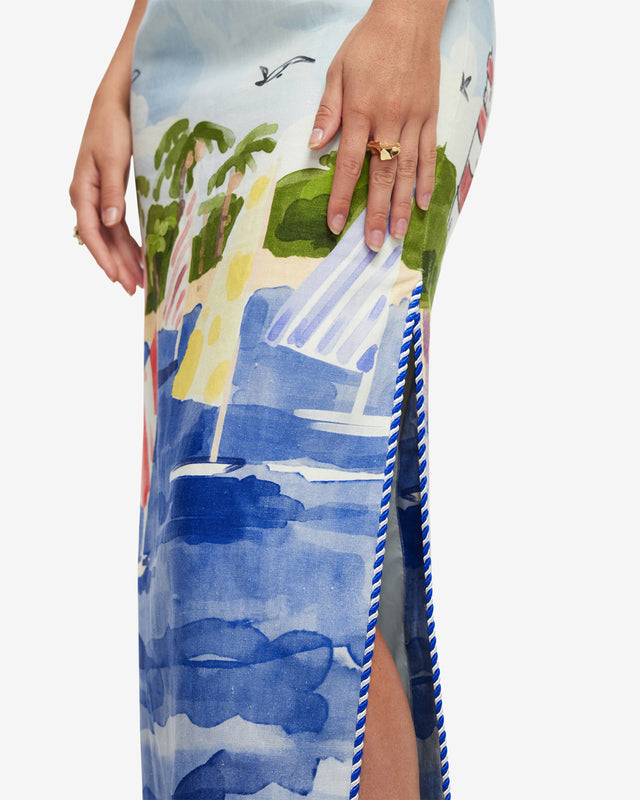 Sailing ships scatter across a soft canvas, sketched with an easy hand. Playful, timeless, and full of seaside spirit.