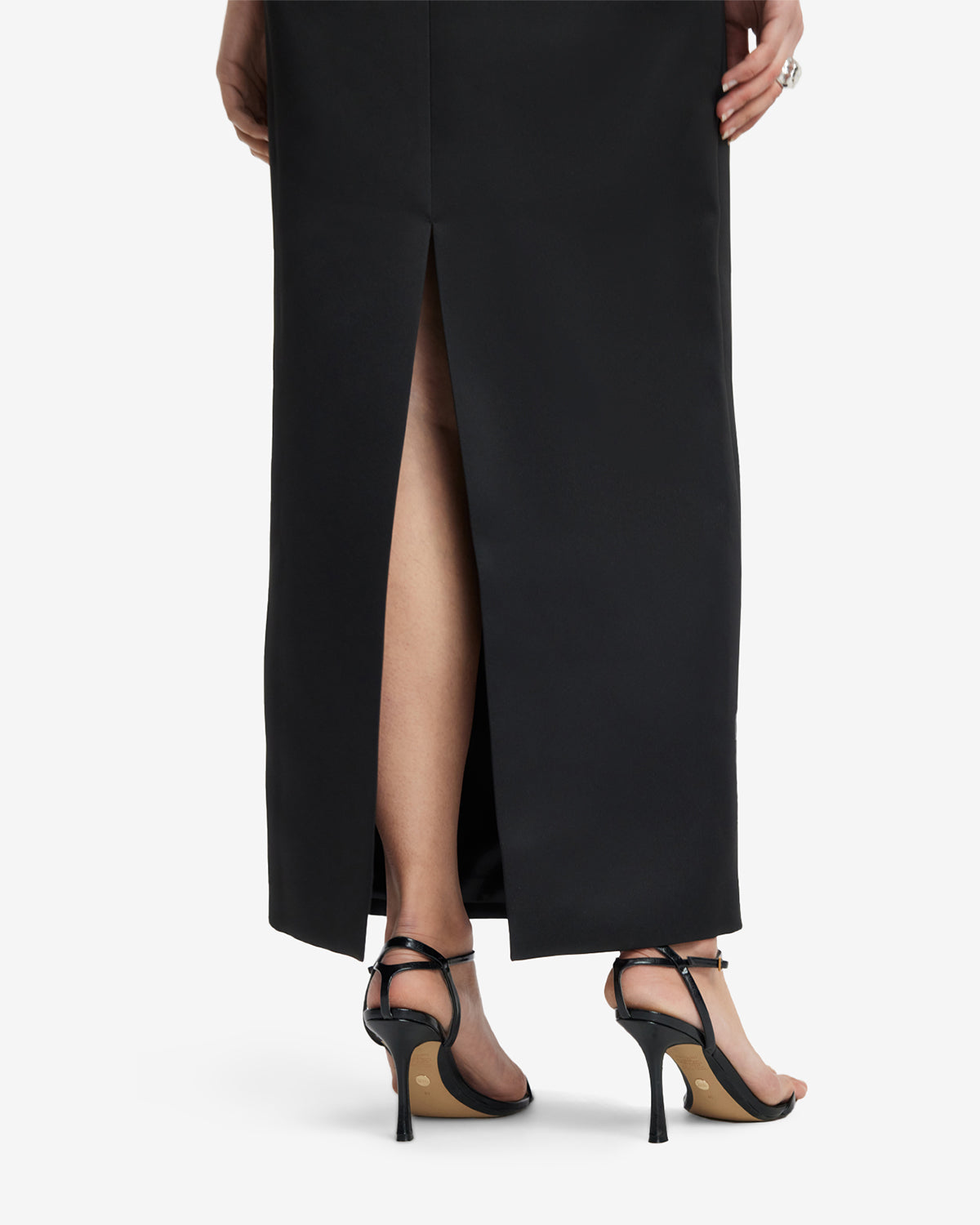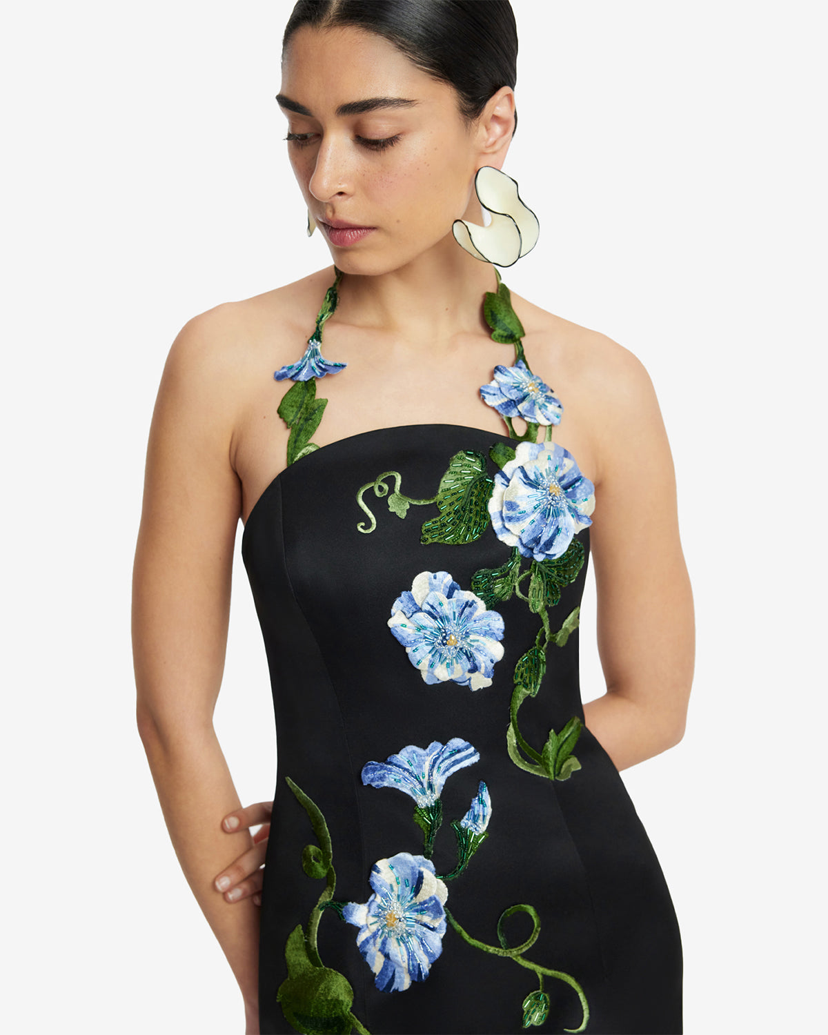 Exclusive LEO LIN Ava Halterneck Applique Floral Bustier Maxi Dress - Vine Print in Ebony