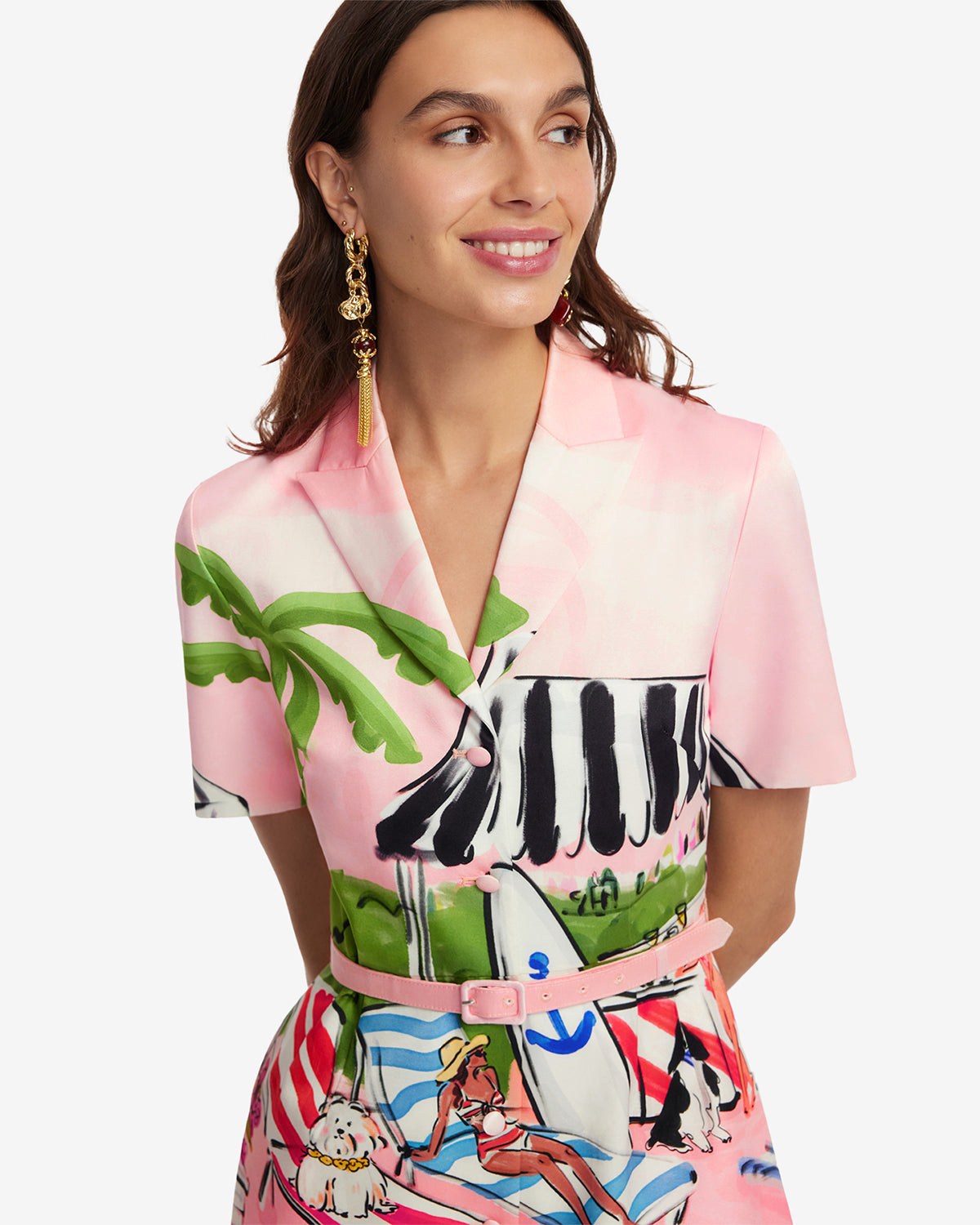 This charming, hand-sketched resort scene is a dreamy European holiday in fabric form. Complete with poolside glamour and playful accents, this print is bright, nostalgic, and fun. Say bonjour to summer!