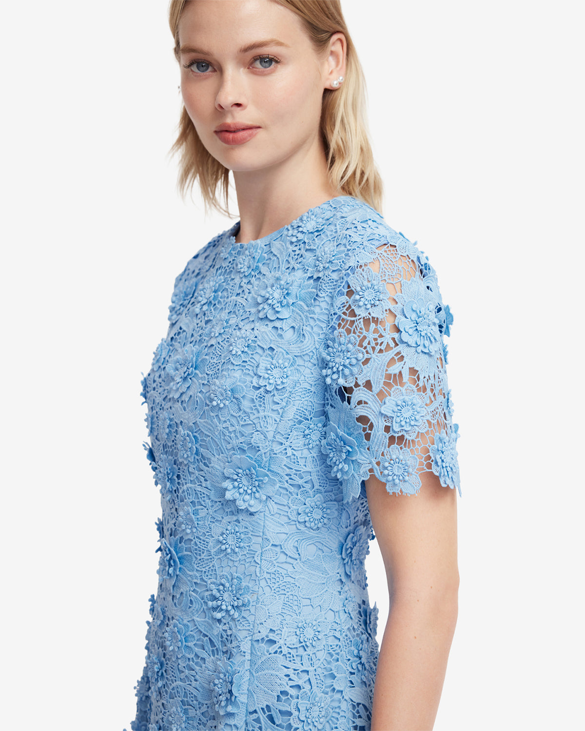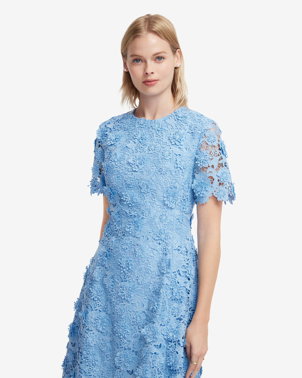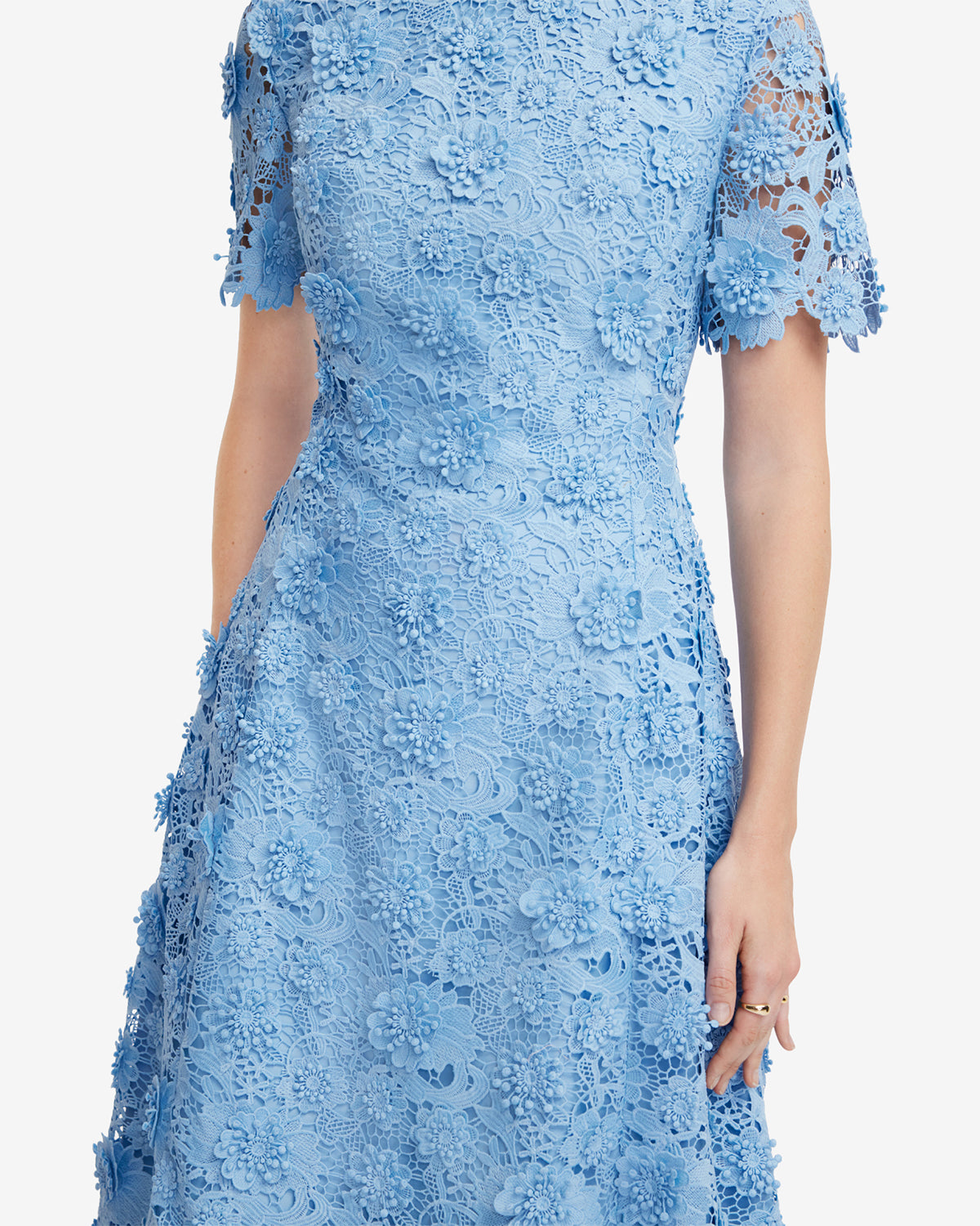 Exclusive LEO LIN Caroline Lace Short Sleeves Midi Dress - Pastel Blue