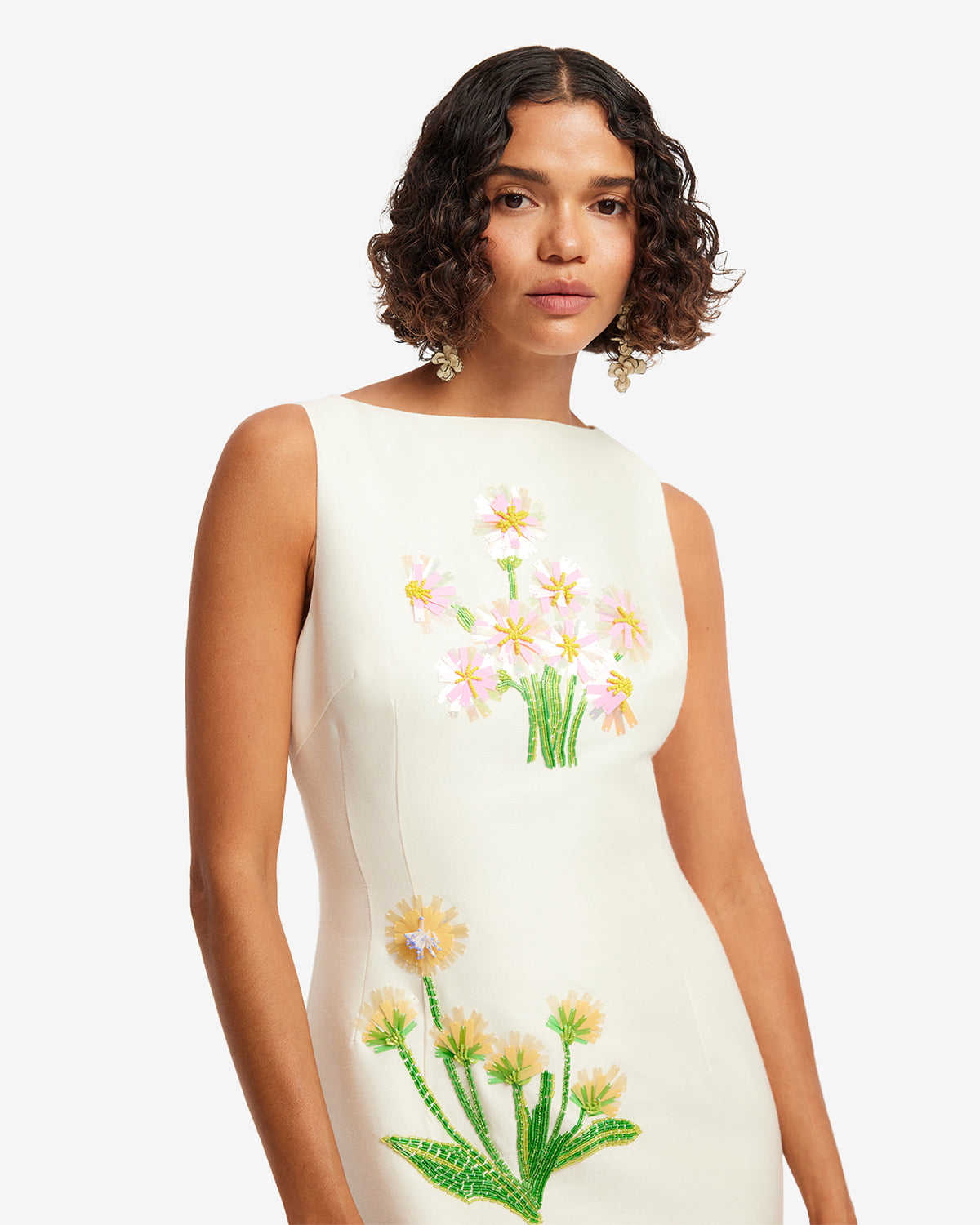 Exclusive LEO LIN Eleanor Embellished Wool Midi Dress - Wildflower