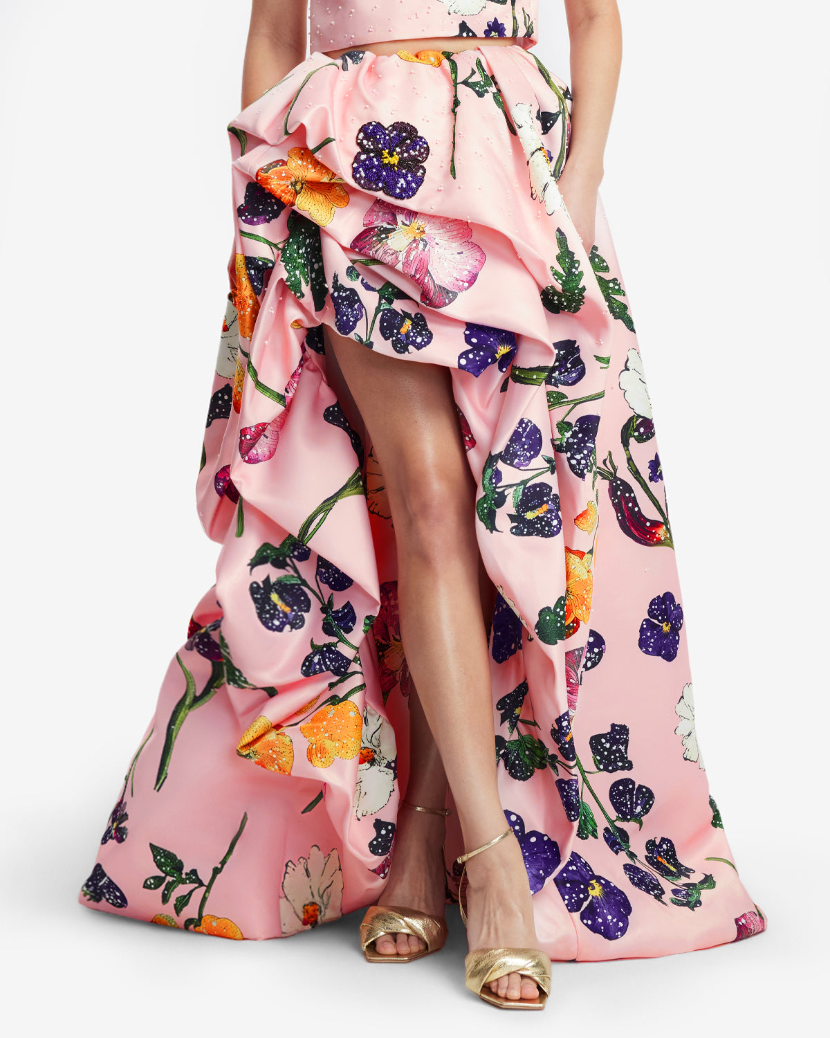 - Voluminous high low gathered skirt
