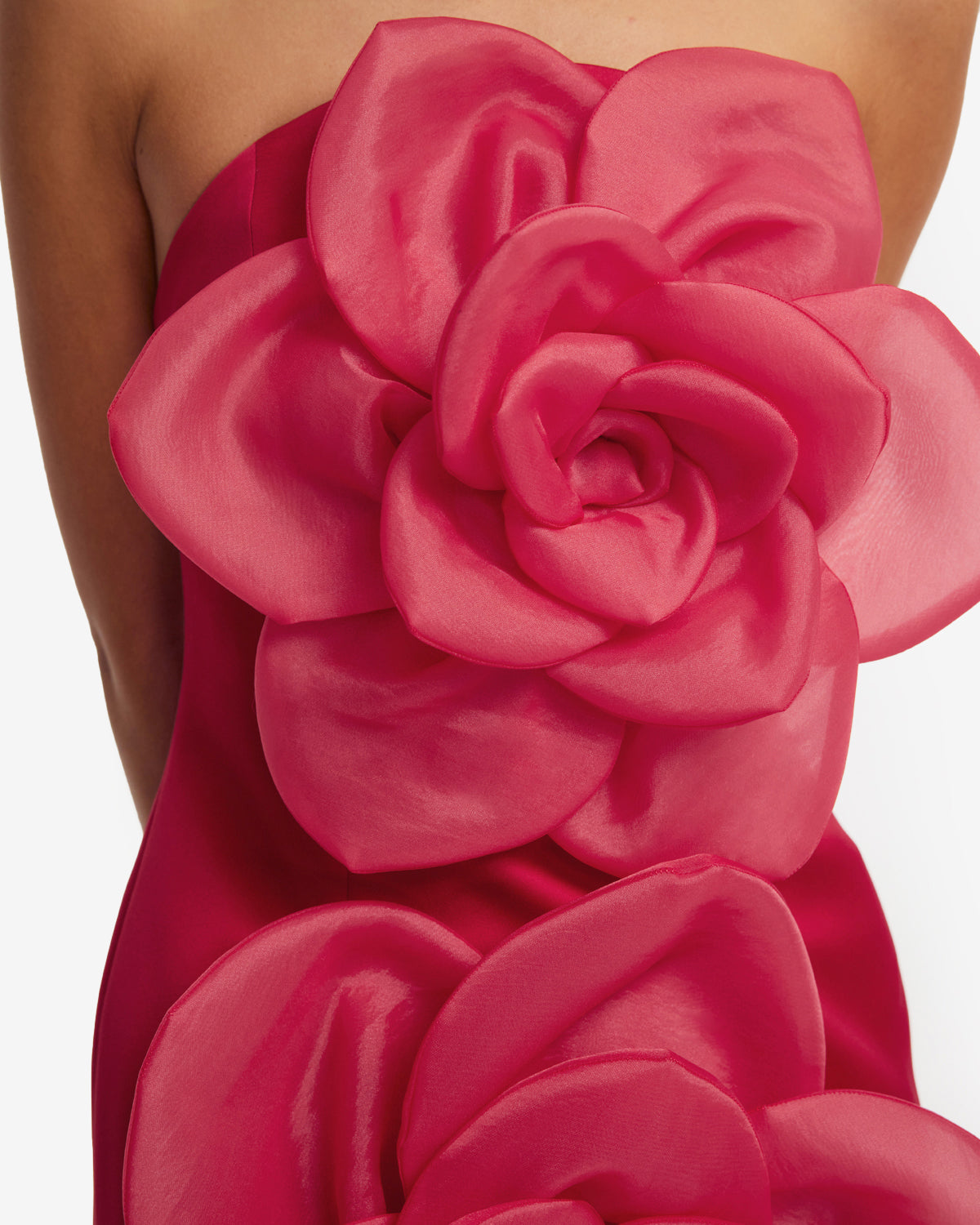 • 3D floral embellishments sculpted on the bodice