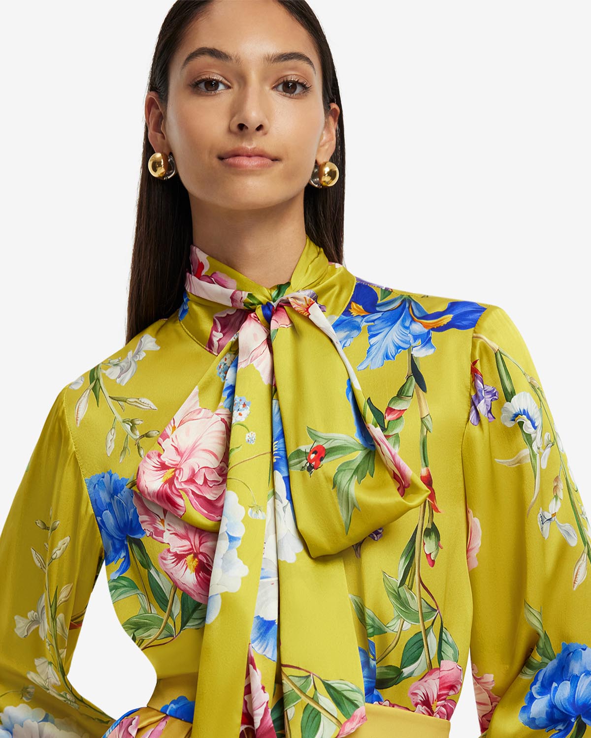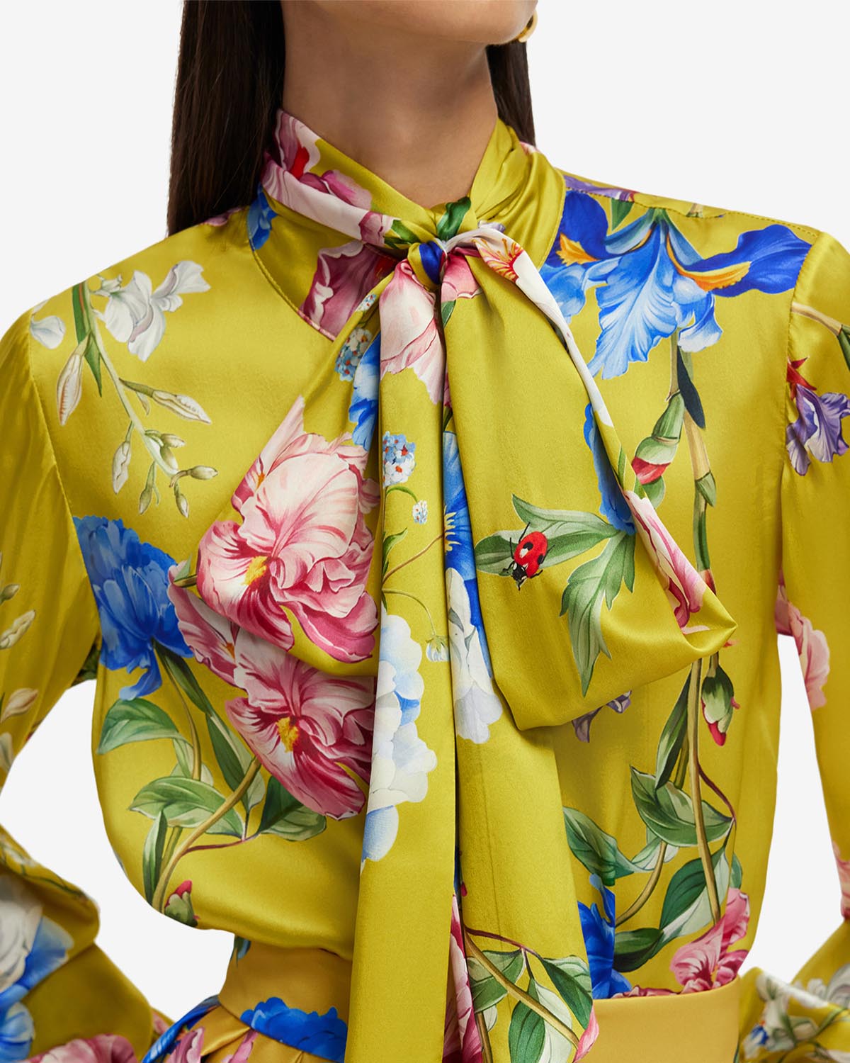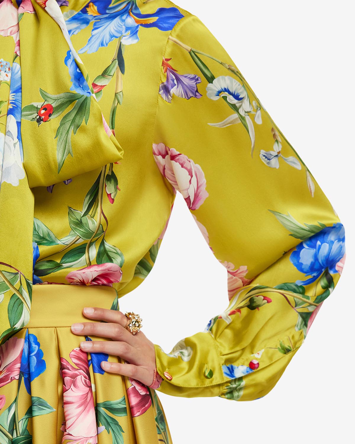 A flower field at golden hour - wildflowers and iris blooms dance across a rich mustard base. Warm, painterly, and full of romance, this print feels like summer pressed between pages.