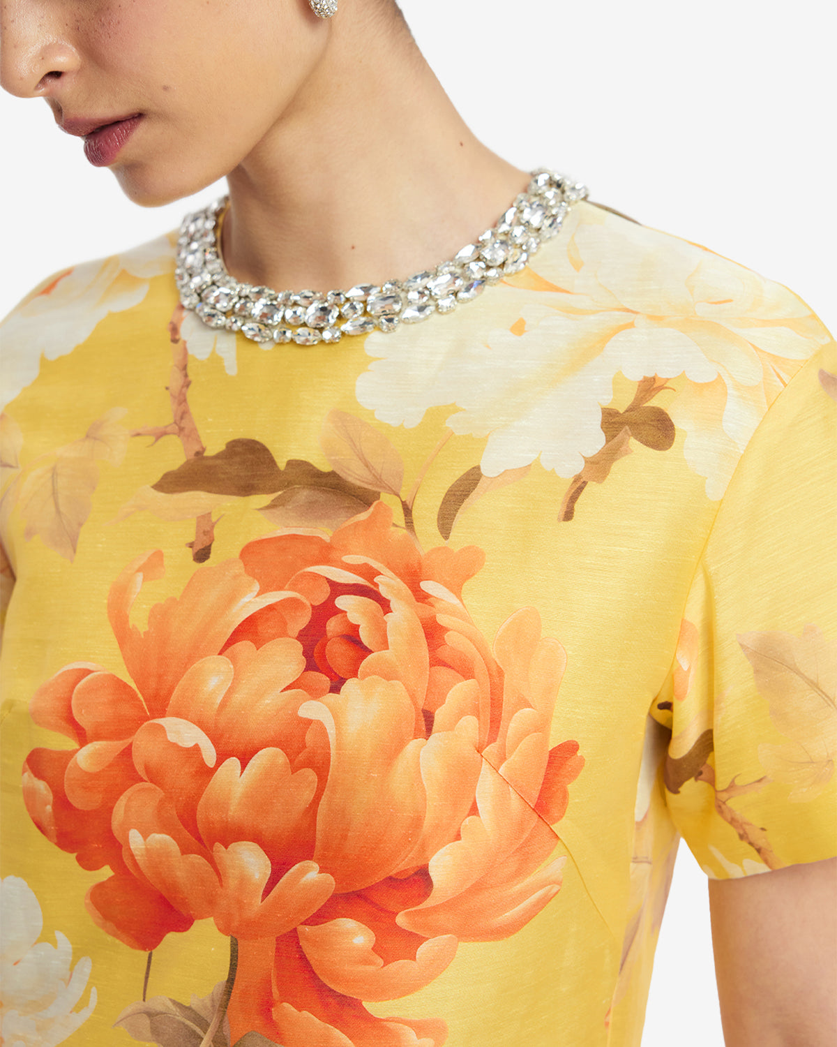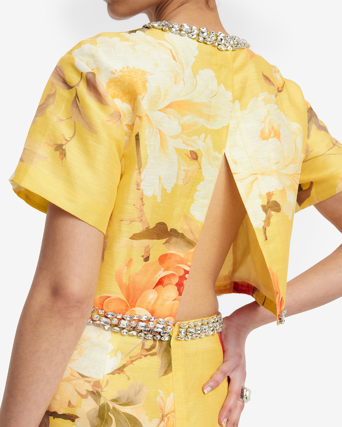 Exclusive LEO LIN Indie Embellished Sleeve Top - Peony Print in Yellow