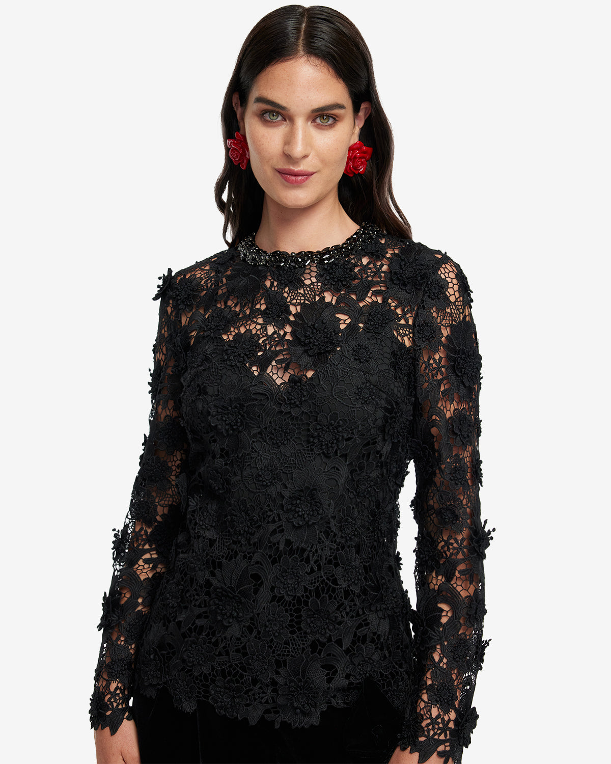 - Round embellished neckline