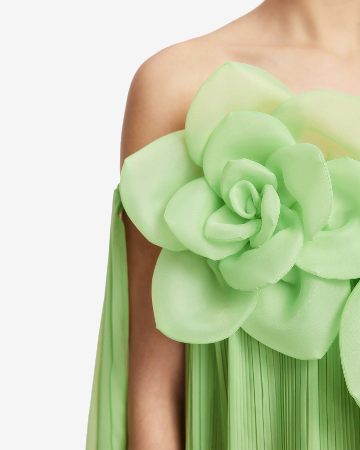 - 3D floral embellishments sculpted on the chest