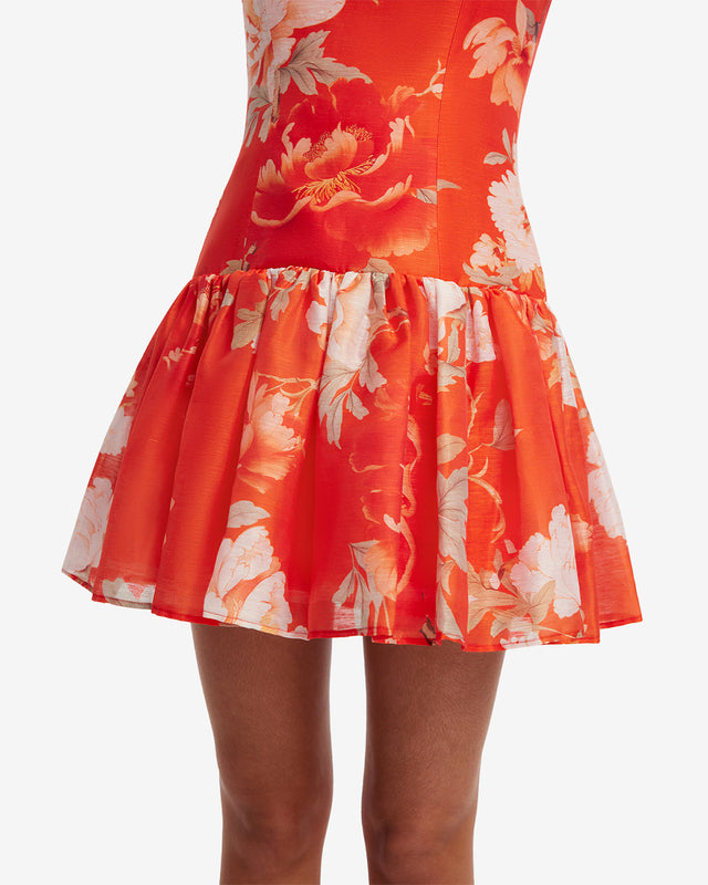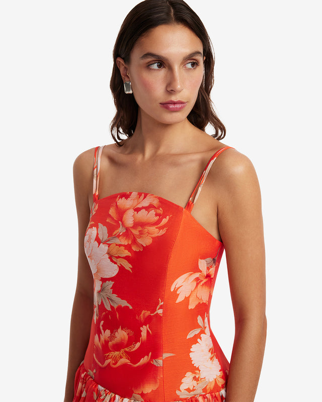Golden saffron sets the stage for big, painterly peonies. Bright, joyful, and bursting with warmth.