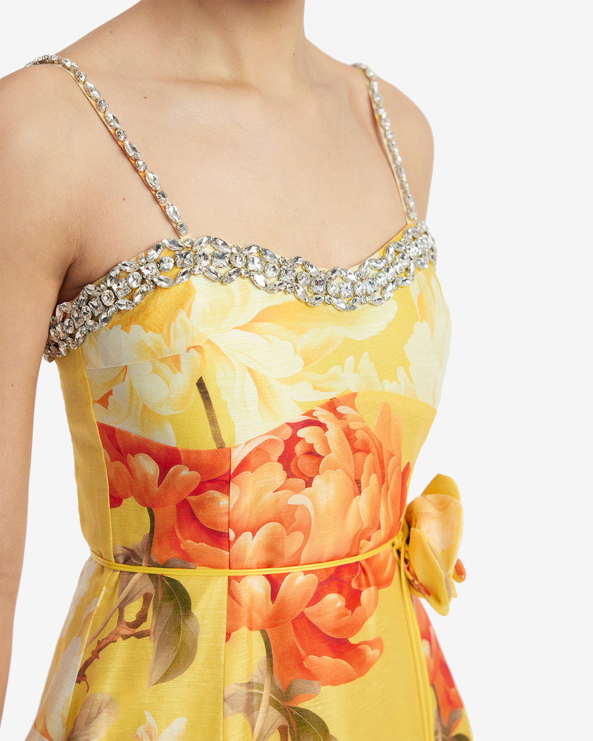 Exclusive LEO LIN Mariela Embellished Midi Dress - Peony Print in Yellow