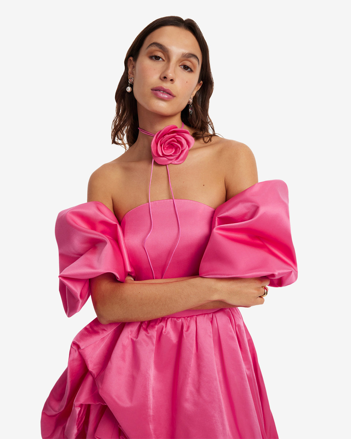 • Gathered sculptural sleeve