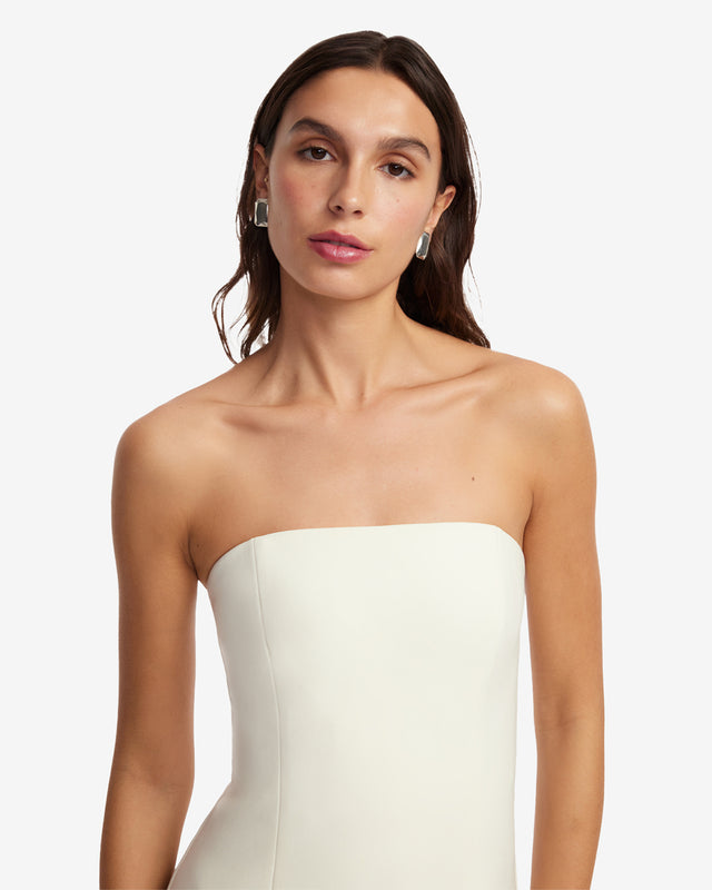 - Strapless neckline