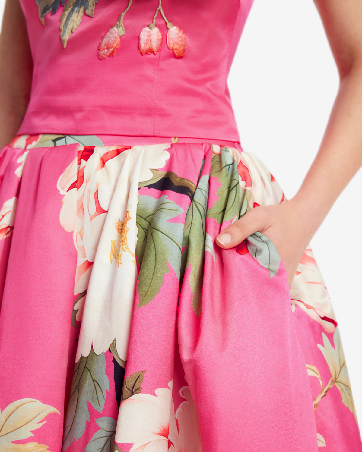 Exclusive LEO LIN Victoria Puff Maxi Skirt - Peony Print in Fuchsia