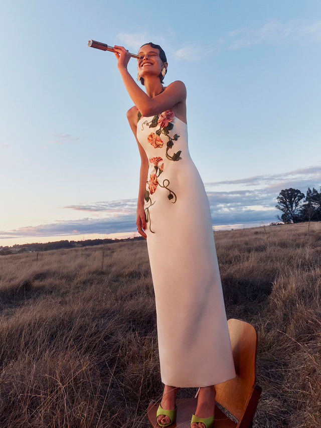 Exclusive LEO LIN Violet Bustier Maxi Dress - Vine Print in Snow